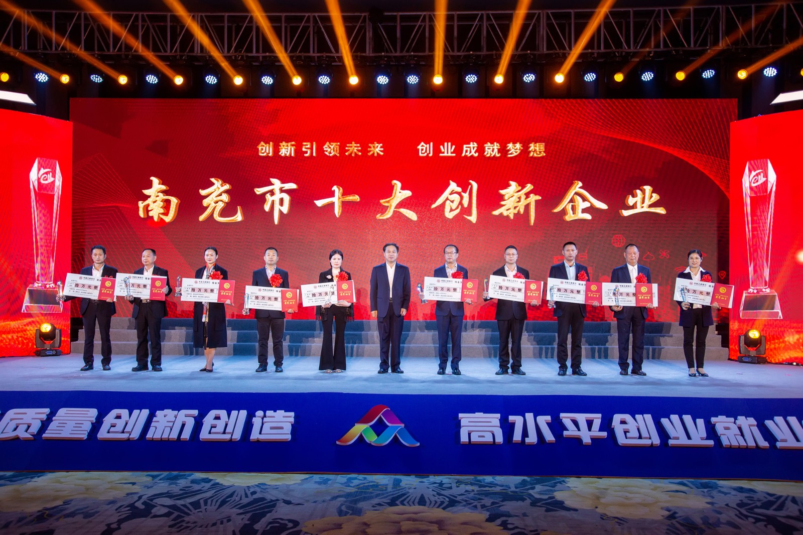 会上为16名第四批南充市“首席技师”颁证,并为第四届“嘉英荟·南充双创大赛”“南充市十大创新企业”“南充市十大创新项目”“南充市十大创新英才”“南充市十大青年创客”“南充市十大双创新锐”获奖代表颁奖,颁发奖金共计220万元。
