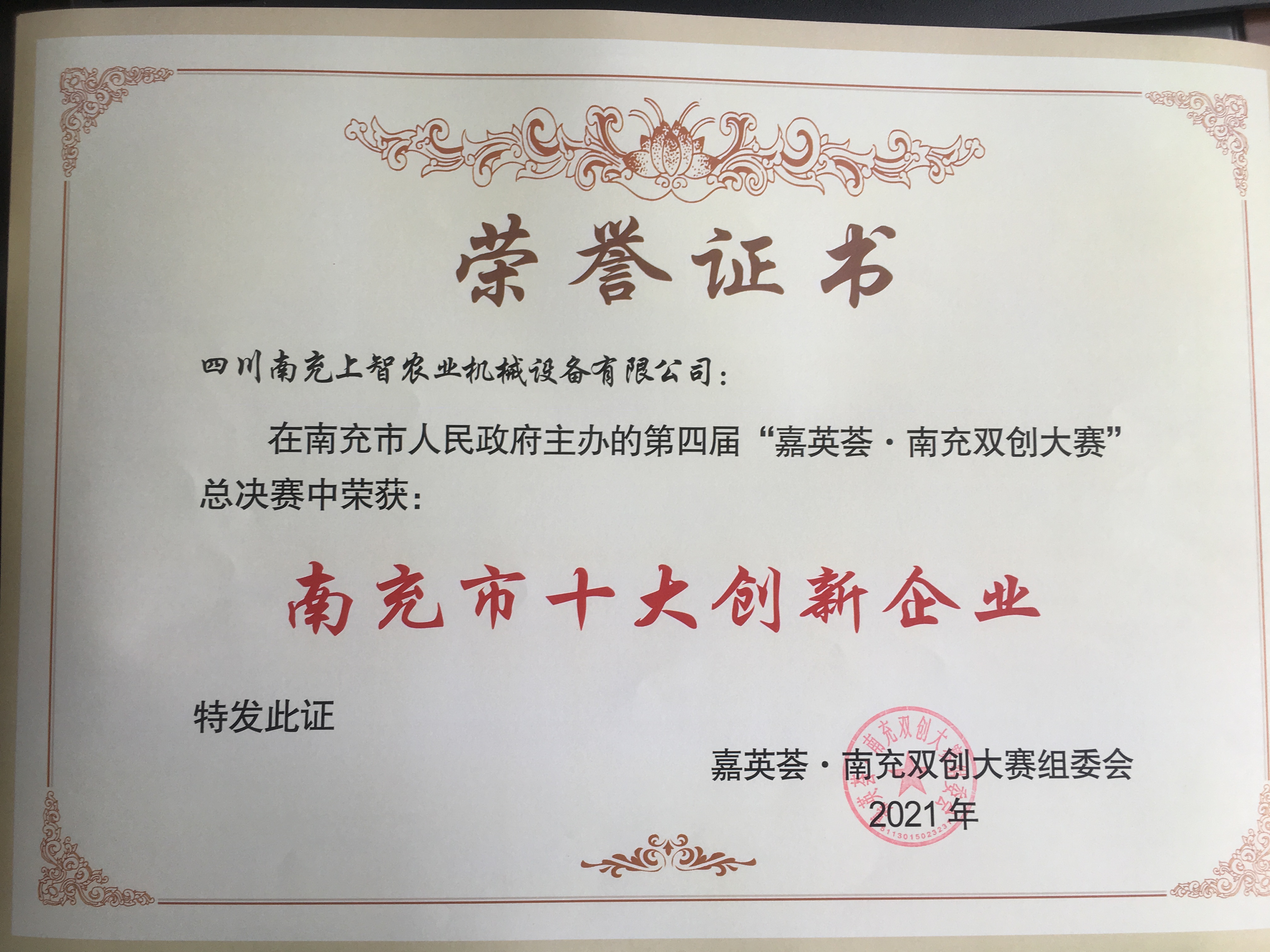 我公司荣获“南充市十大创新企业”称号